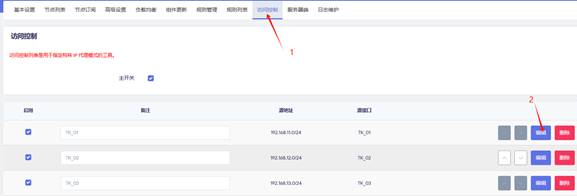 1、 点击“访问控制”页面,选择一个准备使用的控制项,例如TK_01。