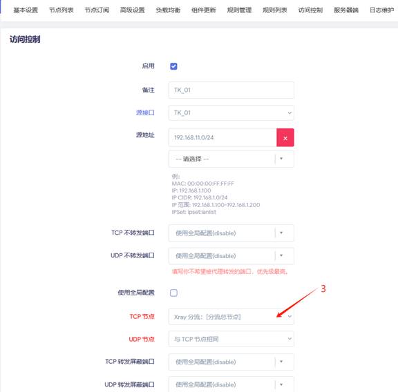 3、参考下图,点击“TCP节点”下拉框,选择希望使用的节点。设置完成,并点击“保存并应用”。