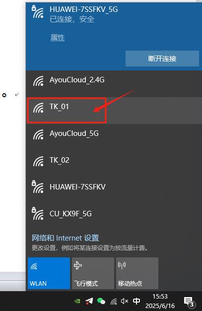 1、回到手机或电脑,打开无线连接,找到WiFi信号“TK_01”,连接。